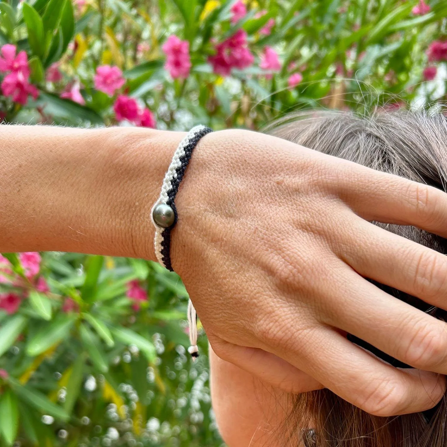 Perle 10 mm gravée tattoo sur bracelet macramé || PER040