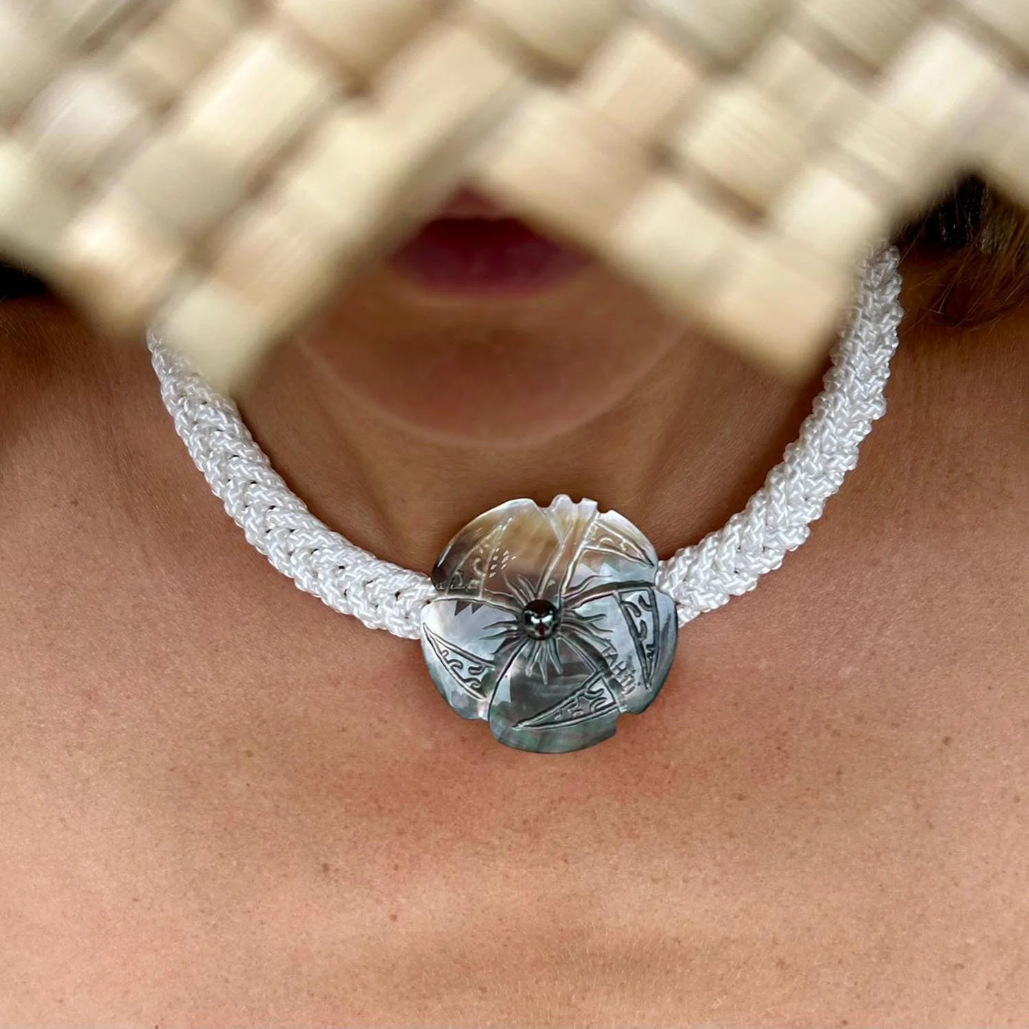 Collier tressé blanc grand tiaré Tahiti || COT008